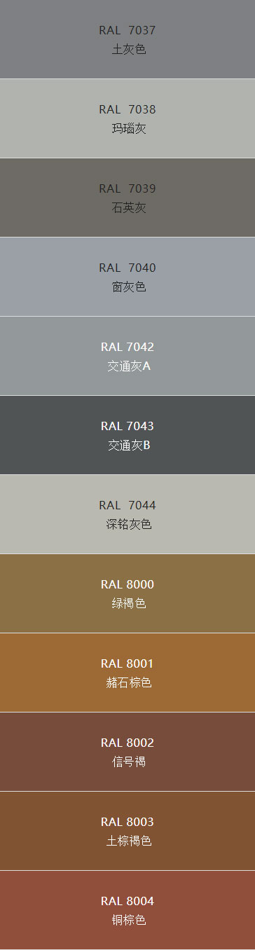什么是RAL色卡?自從1927年,當RAL涉入色彩時,就創(chuàng)建了一種統(tǒng)一的語言,為豐富多彩的顏色建立標準統(tǒng)計和命名,這些標準在世界范圍內(nèi)被廣泛的理解和應用。 4位數(shù)的RAL顏色作為顏色標準已達70年之久,至今為止已發(fā)展到200多種。無光澤的顏色基礎色卡為RAL-840HR,有光澤的為841-GL,這些顏色基本色塊滿足了大范圍的應用,已被許多重要公司及研究機構(gòu)所使用。RAL-840HR及RAL-841GL 顏色注冊都作為顏色樣本應用于設計中,同時它們也包括了安全和信號色符合DIN及ISO規(guī)定的顏色要求。